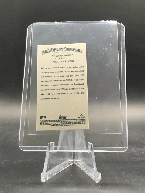 Paul Skenes rookie cards are among the hottest in the hobby, with collectors eager to invest in his future. Allen & Ginter’s mini design variation adds rarity and uniqueness, making this card a must‑have for Pirates fans and modern baseball collectors.